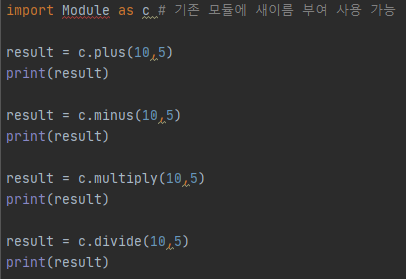 ① 모듈 사용 ( import ) - 가독성을 높은 방법으로 가장 많이 권고 하는 방법입니다.