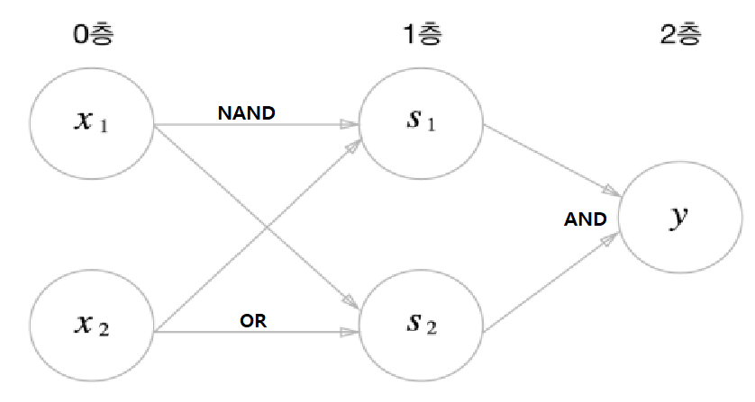 AND , NAND , OR 를 구성하여 XOR를 구현