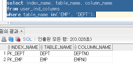 기본키나 유일키가 아닌 컬럼에 대해서 인덱스를 지정하려면 create index 명령어를 사용.