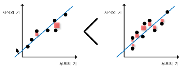 - 제곱을 한다는 것은 면적을 구하는 것으로, 그 면적의 제곱이 더 작은 기울기를 찾는 것입니다. 왼쪽 보다 오른쪽이 더잘 찾은 그래프 입니다.