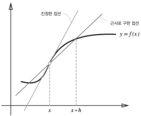 - 진정한 미분 접선 과 수치 미분 근사로 구한 접선 의 값