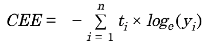 cee = cross_entropy_error(np.array(t),np.array(y)) # 리스트 형태 -> 배열로 변환