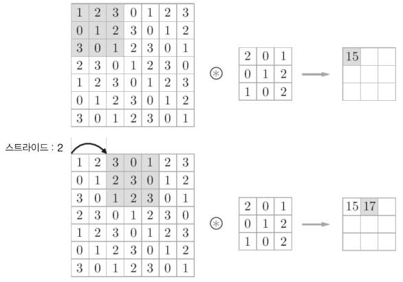- 스트라이드를 키우면 출력 크기는