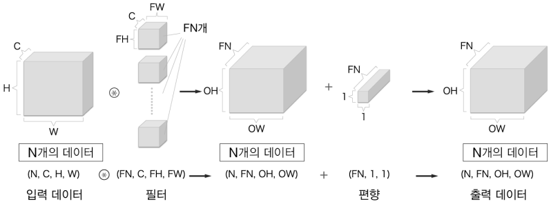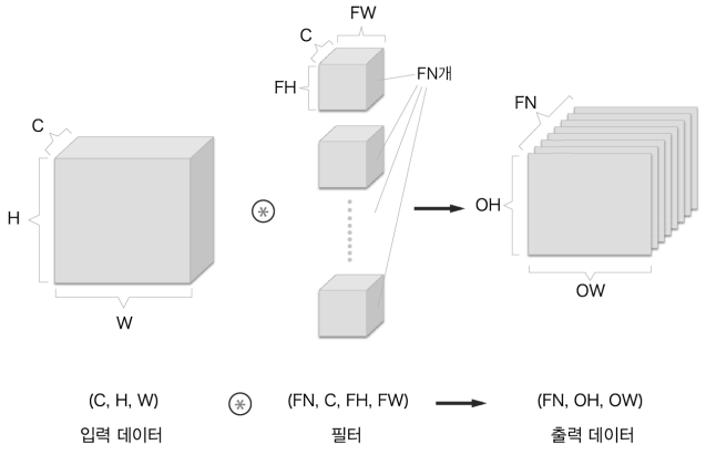 - 데이터와 필터의 형상을 (높이, 너비)로 표기 합니다.