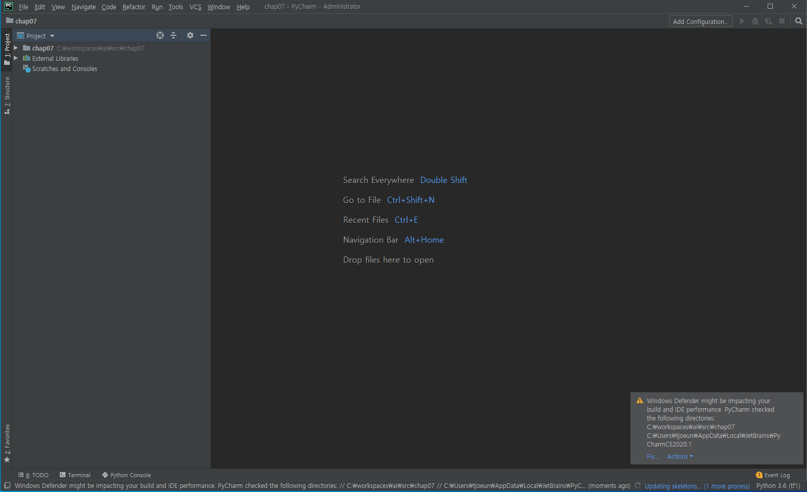 pycharm에서 지금까지 설정한 가상환경을 설정하도록 하겠습니다.