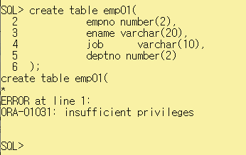 - 테이블 생성 권한을 받지 않으면 위의 사진 처럼 ERROR 가 나옵니다.
