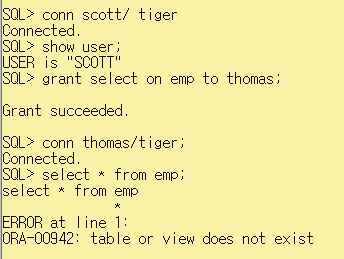 6) 테이블 객체에 대한 select 권한 부여 ( scott/emp -> thomas )