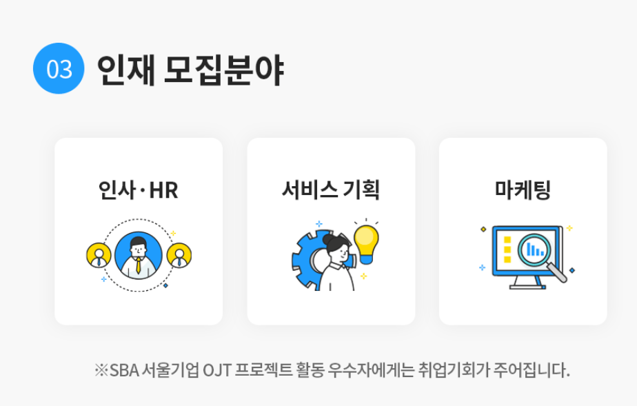 마케팅이라는 분야에 관심을 가지기 시작하면서 경험 할 수 있는 방법이 없을까 찾아보다가 운이 좋게 서울산업진흥원(SBA)에서 진행하는 채용연계형 서울기업 OJT 프로젝트를 알게 되어서 지원하게 되었습니다.