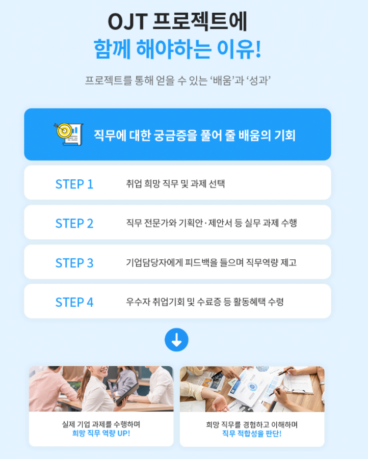 OJT란 직장 내 상사나 선배에 의해 받게 되는 교육이며 업무와 관련해 개별적으로 배운다는 점에서 효과적입니다.