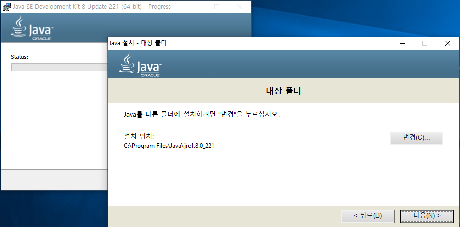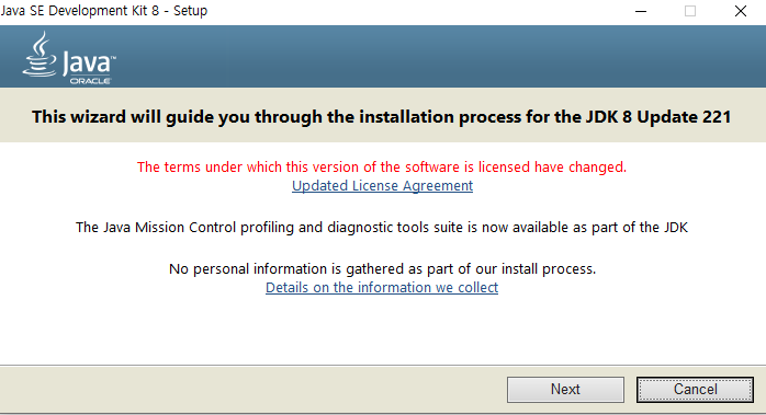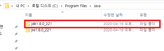 JAVA 에서 jdk1.8.0_221 로 들어갑니다.