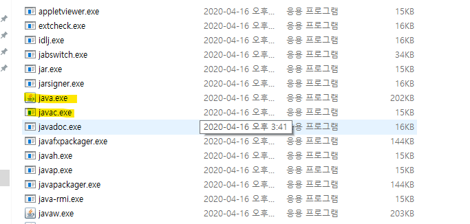 java.exe 와 javac.exe 가 함께 깔려있다면 잘 다운받아진것 입니다. 그럼 이제 JAVA 프로그래밍 언어를 시작해봐요~~!!