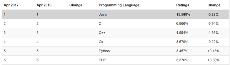 프로그래밍 언어의 인기 순위를 매기는 사이트