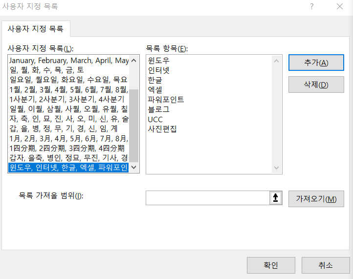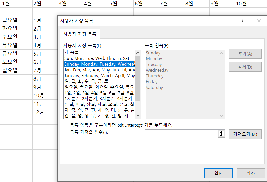 자주 사용하는 목록을 사용자 지정 목록에 넣어서 사용하게 되면