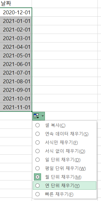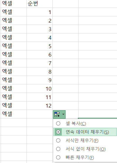 연속 데이터 채우기를 누르면 순서가 증가하는 것을 볼 수 있습니다.