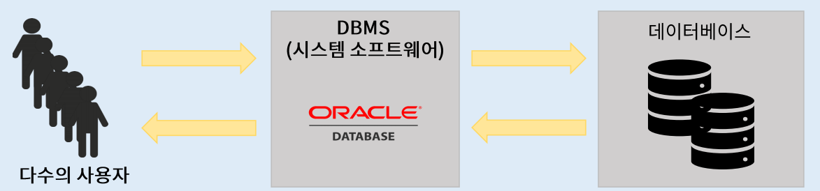 | 동시 공유(concurrent sharing) | - 데이터 베이스는 서로 다른 업무 또는 여러 사용자에게 동시에 공유된다. - 동시는 병행 이라고도 하며, 데이터베이스에 접근하는 프로그램이 여러 개 있다는 의미이다. |