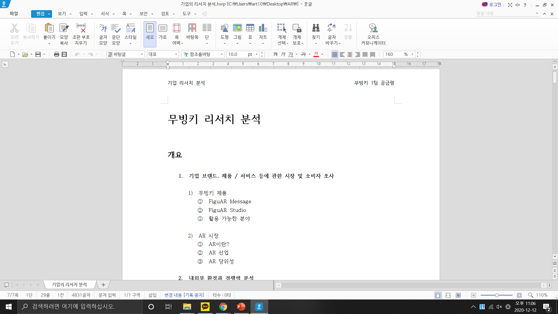 저희 팀은 저번주에 정하고 정리한 무빙키FiguAR 연예 사업 기획 및 마케팅을 토대로 제안서를 만들어 보는 시간을 가졌습니다.