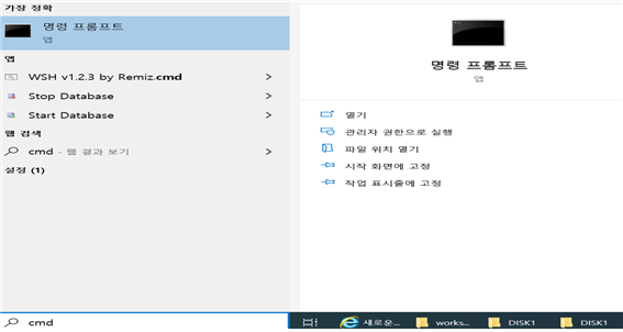 ● 마지막으로 잘 다운 받았는지 확인을 해봐야겠죠? 검색에 cmd를 치고 명령 프롬프트를 켜주세요.