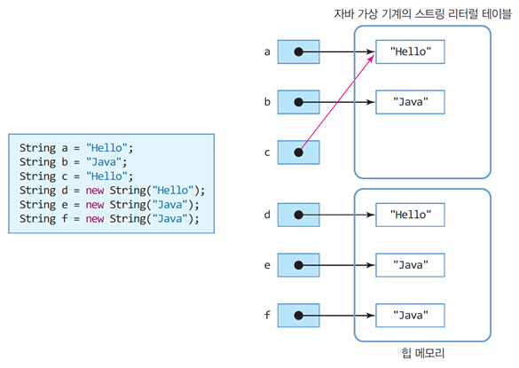 String클래스는 하나의 문자열 표현하고, java는 큰 따옴표로 묶여서 표현되는 문자열을 모두 인스턴스화 합니다.
