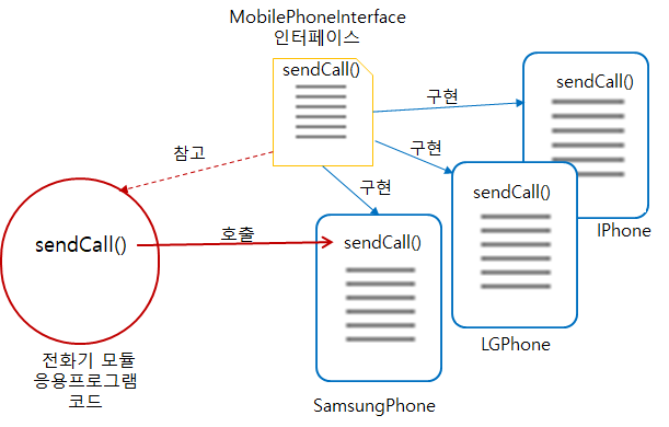 : 인터페이스는 두 결과물의 연결고리가 되는 일종의 약속 역할한다고 이야기 할 수 있습니다.