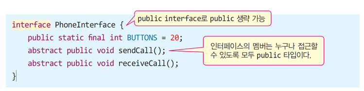 4. 인터페이스 선언 (interface 키워드로 선언)