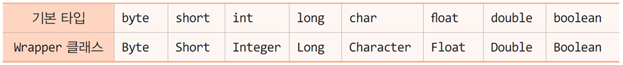 // Wrpper class : 기본 자료형을 class 로 감싸서 참조 자료형으로 사용 할 수 있도록 한다.
