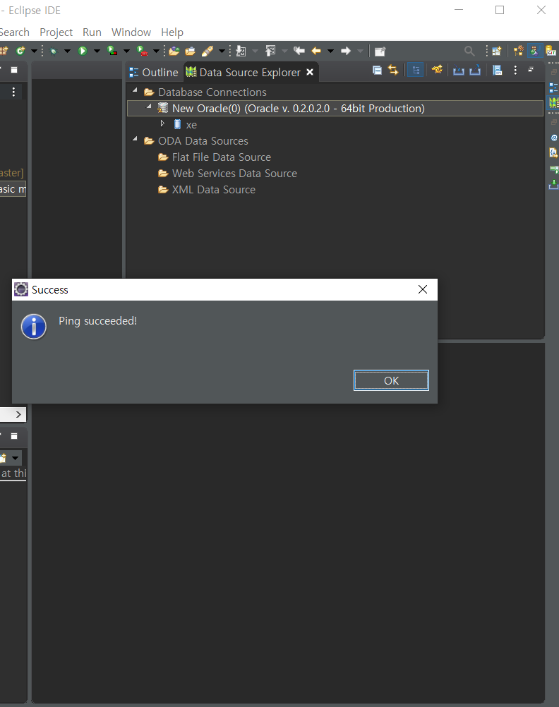 이렇게 ping succeeded! 와 함께 연결에 성공하였습니다.