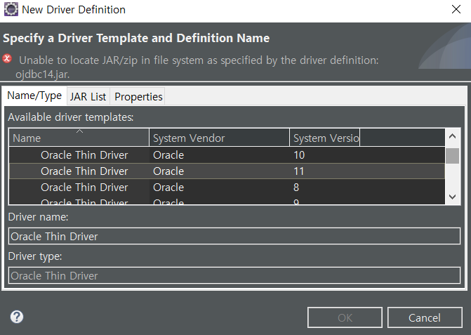 저는 oracle thin 11 버전을 사용하고 있어서 선택해줍니다.