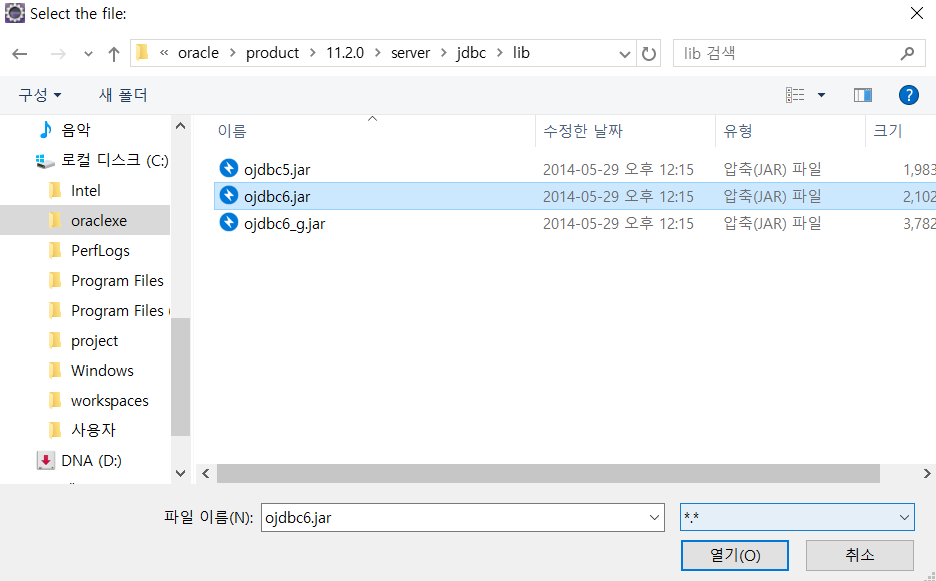 jar파일을 찾아서 연결해줍니다.