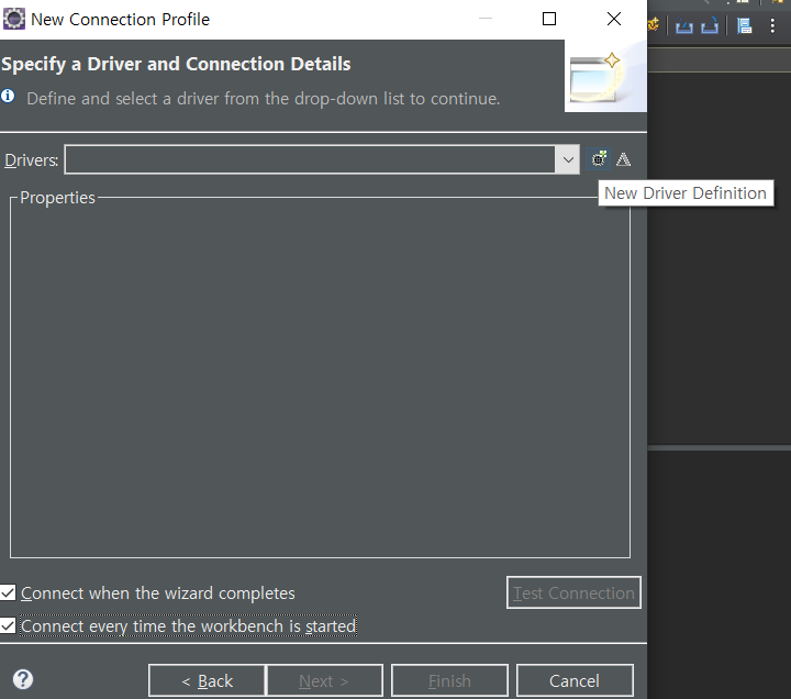 new driver definition 을 눌러줍니다.