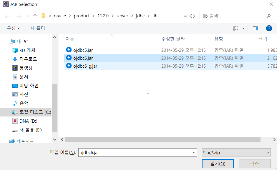 jar파일을 선택합니다.
