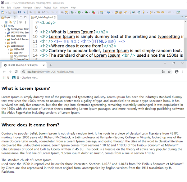 수평줄을 그어주는 태그 : <hr> 를 사용합니다(단일태그)