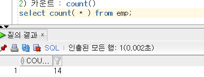 2) 카운트 : count() / 형식 : select count(필드명) from 테이블명;