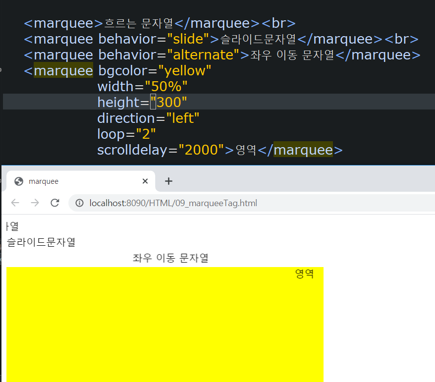 1) 글자가 흘러가듯 지나가게 만드는 태그