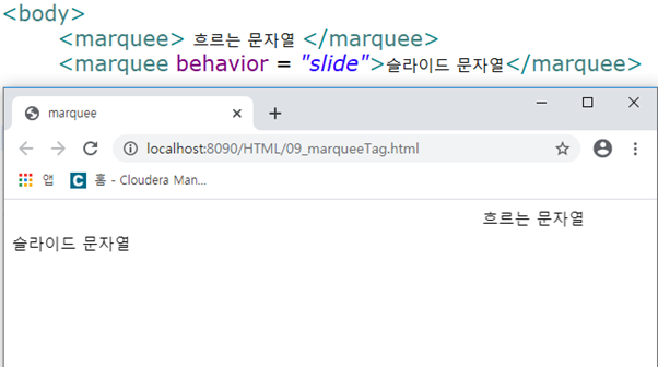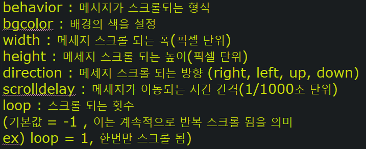 <marquee> 내용 </marquee>