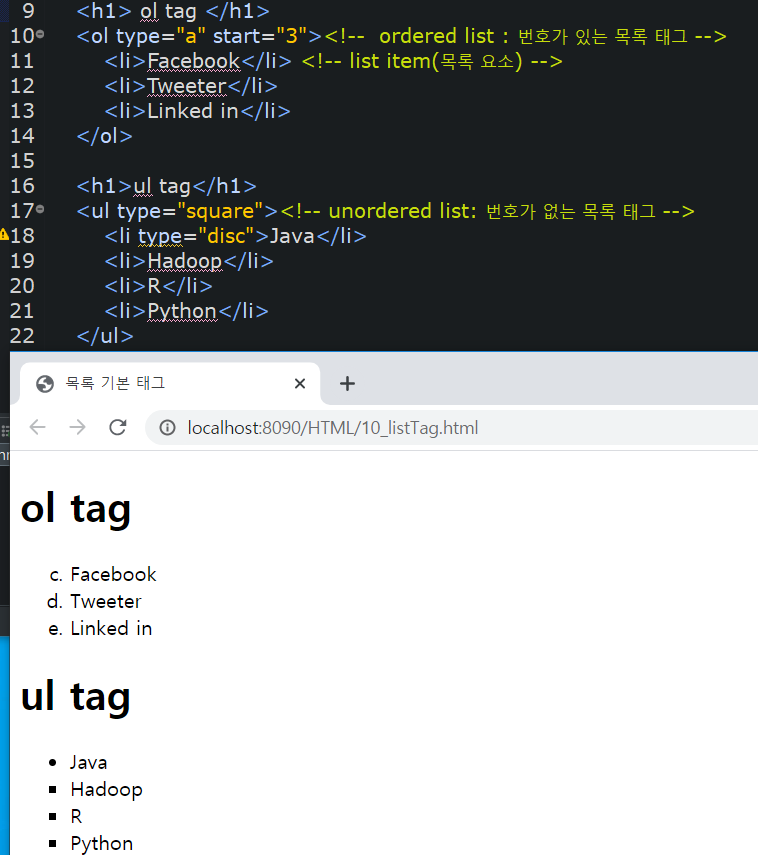 <ul></ul> : unordered list = 번호가 없는 목록 태그