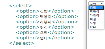 - Swing에서 사용하는 combobox 와 같은 처리하는 태그