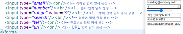 - number : 숫자 입력(옆의 커서를 눌러서 변경이 가능)