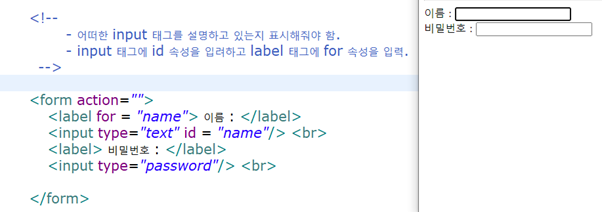 레이블과 입력 양식 태그를 연동하여 label 을 선택했을 때 포거스가 들어도록 합니다.