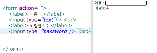 - password : 입력 시 , 특수 문자로 출력하여 노출 되지 않게 합니니다.