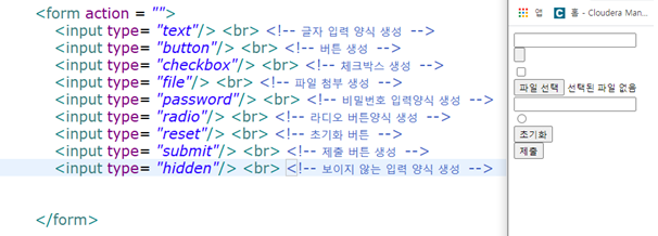 - reset : 초기화 버튼을 누르면 form 안에 있는 모든 입력 양식 태그가 초기화 됩니다.