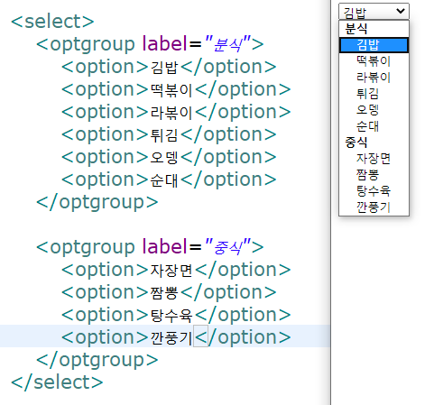 <select> <optgroup label =""> <option></option> </optgruop> </select> 형태로 가능하게 합니다.