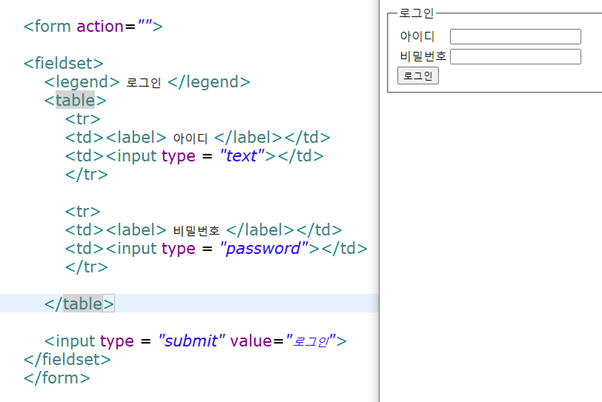 Legend : fieldset 안에서 사용했을 때, 타이틀의 모양으로 나타냅니다. (fieldset 안에서 자녀 태그)