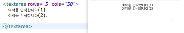 textarea에 한에서만 모든 여백을 그대로 text로 인식하요 처리합니다.