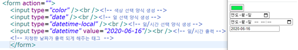 - datetime-local : 연, 월, 일, 시, 분 선택