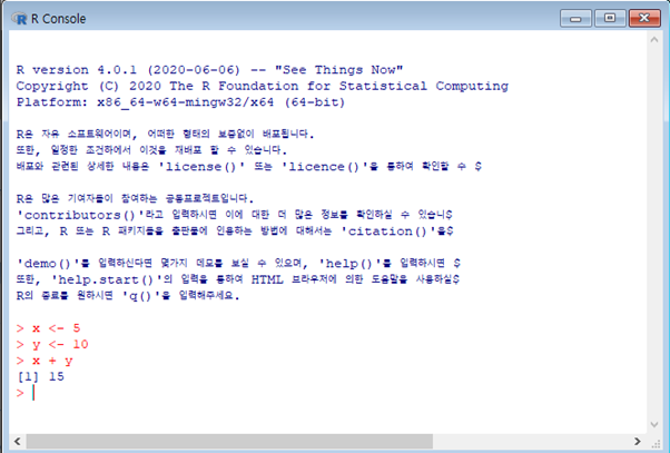 R은 바로바로 출력 되는 인터프린트 형태입니다. / 한 줄 씩 실행되어집니다.