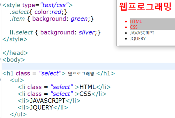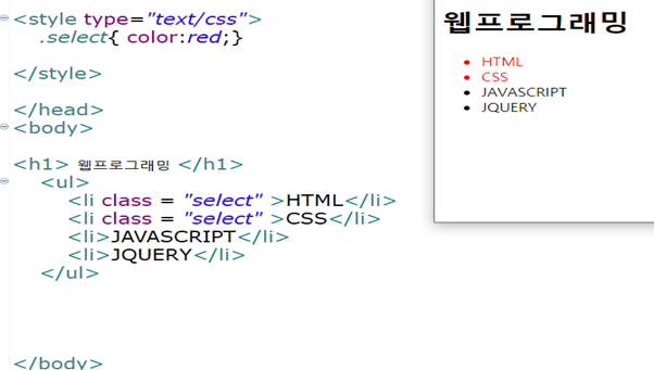 - class 속성은 서로 다른 태그에 적용된다면 태그선택자와 클래스선택자를 함께 사용해서 더 정확하게