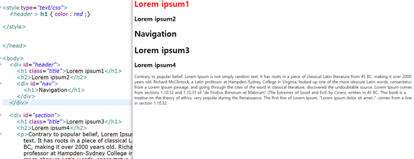 - id 속성은 웹페이지 내부에서 중복되지 않으므로 상관없지만 class 속성은 중복될 수 있습니다.