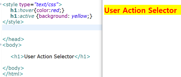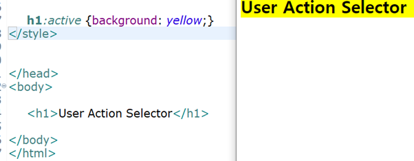 2) :active -> 특정 태그(h1)에 마우스를 클릭할 경우에 반응