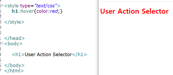 1) :hover -> 특정 태그(h1)에 마우스를 올릴 경우에 반응.