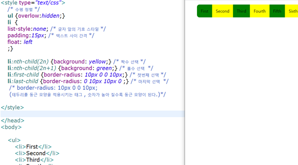 3) :nth-child(n) = 앞에서 n번째 있는 자손을 선택.